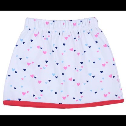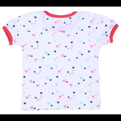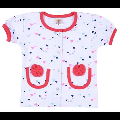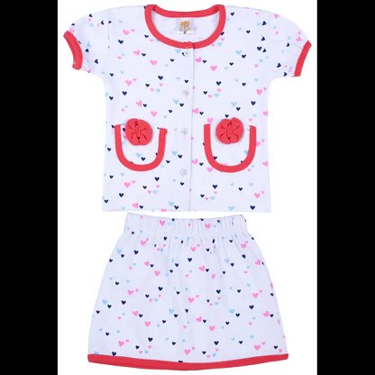 Keep your little one looking cute and feeling cozy with our Freya Baby Girl Top & Skirt Set. Made from soft and breathable interlock cotton, this set is perfect for everyday wear and special outings. The short-sleeve buttoned top features playful heart prints and adorable flower-detailed pockets, paired with a matching skirt for a stylish look. Gentle on delicate skin and easy to wear, this outfit ensures both comfort and charm for your baby girl